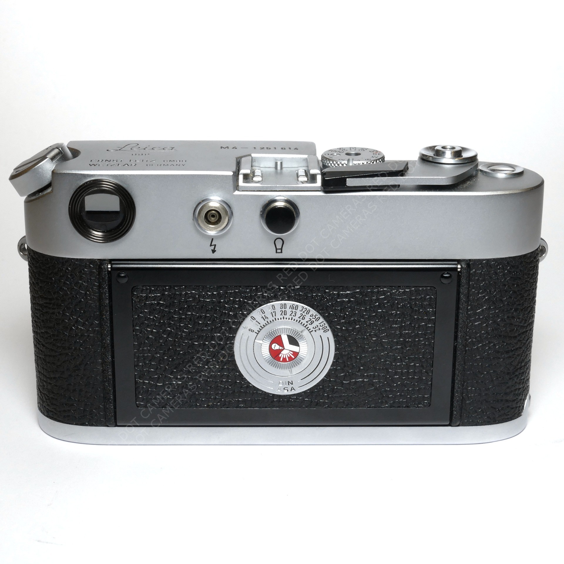 This special edition of the M4-P in silver chrome was issued in 1983 to note the 70th anniversary of when Oskar Barnack completed his first prototype. These cameras have a special number and are engraved with the curved script logo and the years 1913-1983 on the back of the top plate. This edition of 2500 was supplied in sets with similarly engraved lenses.