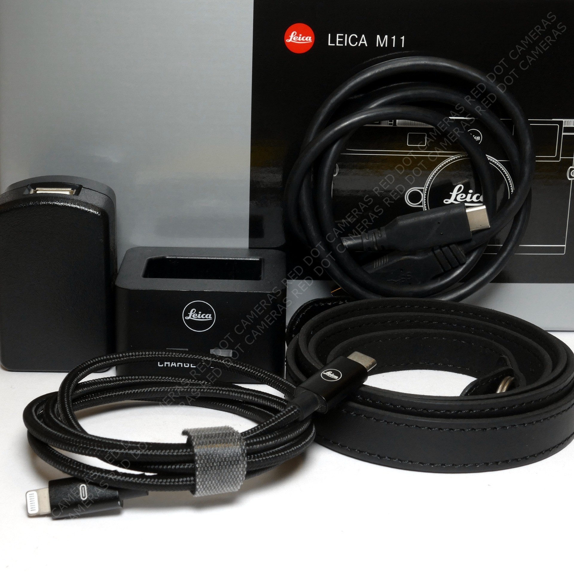 The camera comes boxed with user manual, 2 Leica batteries (one boxed), neck strap, battery charging block, cable and plug set