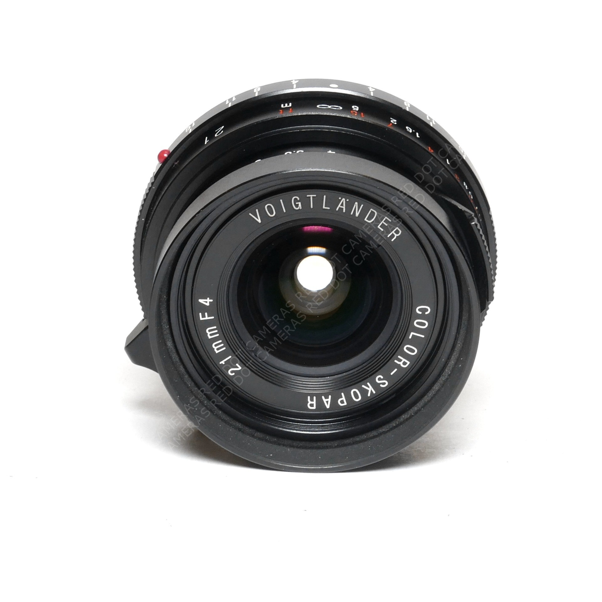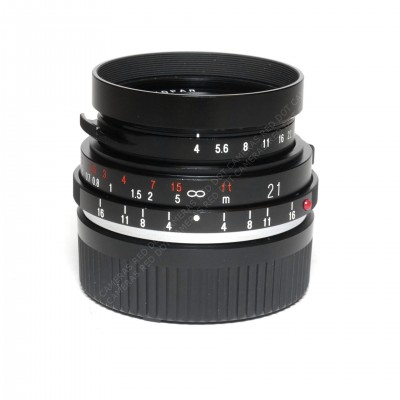 The lens comes with 21mm metal finder, rear cap and push on lens cap.