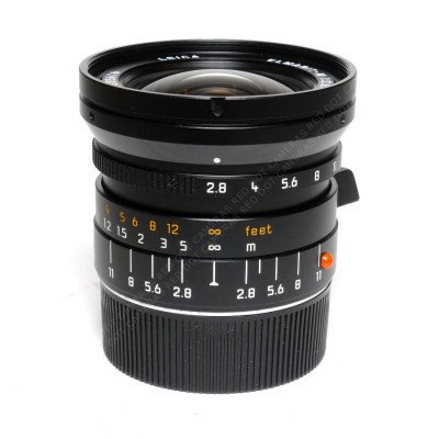 The lens comes boxed with case. hood, push on lens cap, retaining ring and Leica UVa Filter