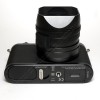 Camera comes with battery, charger, strap, hood, handgrip and lens cover.