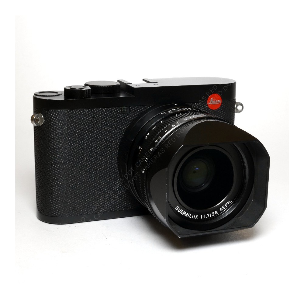 The camera comes boxed with USBc cable, hood, retaining ring, push on lens cap, neck strap, 3rd party half case with grip and Leica round lens hood