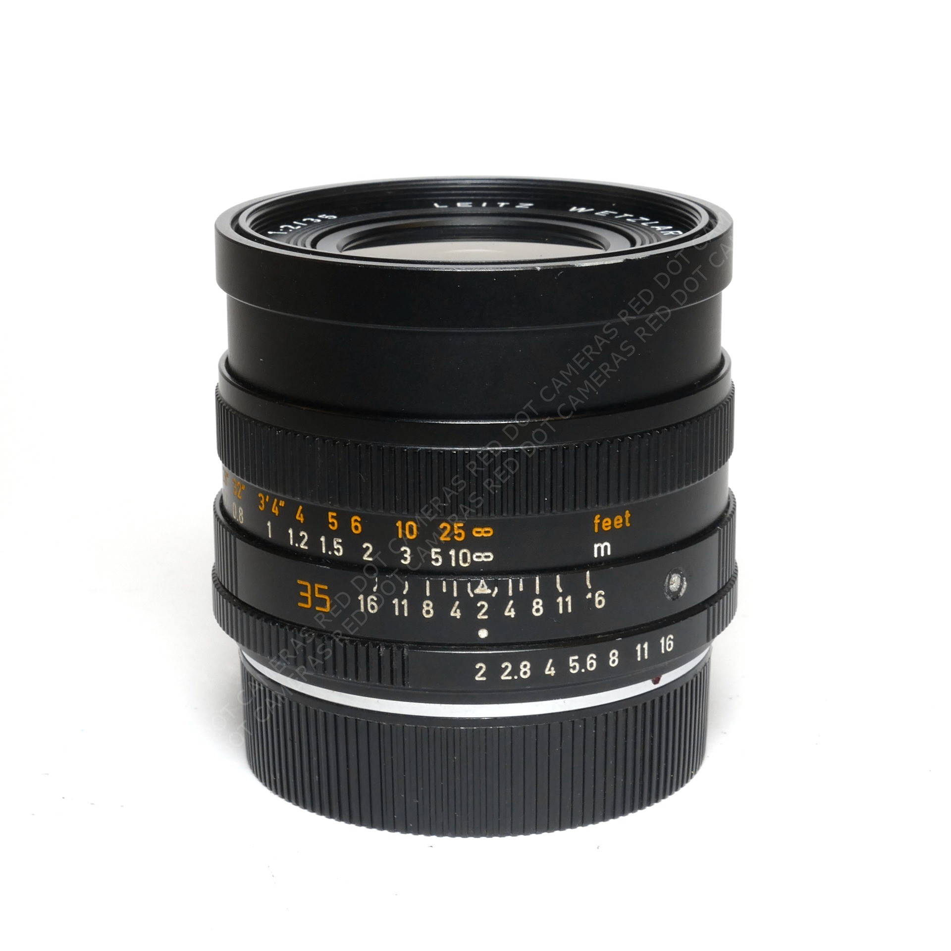The lens comes boxed with hood, Leitz series filter and push on lens cap