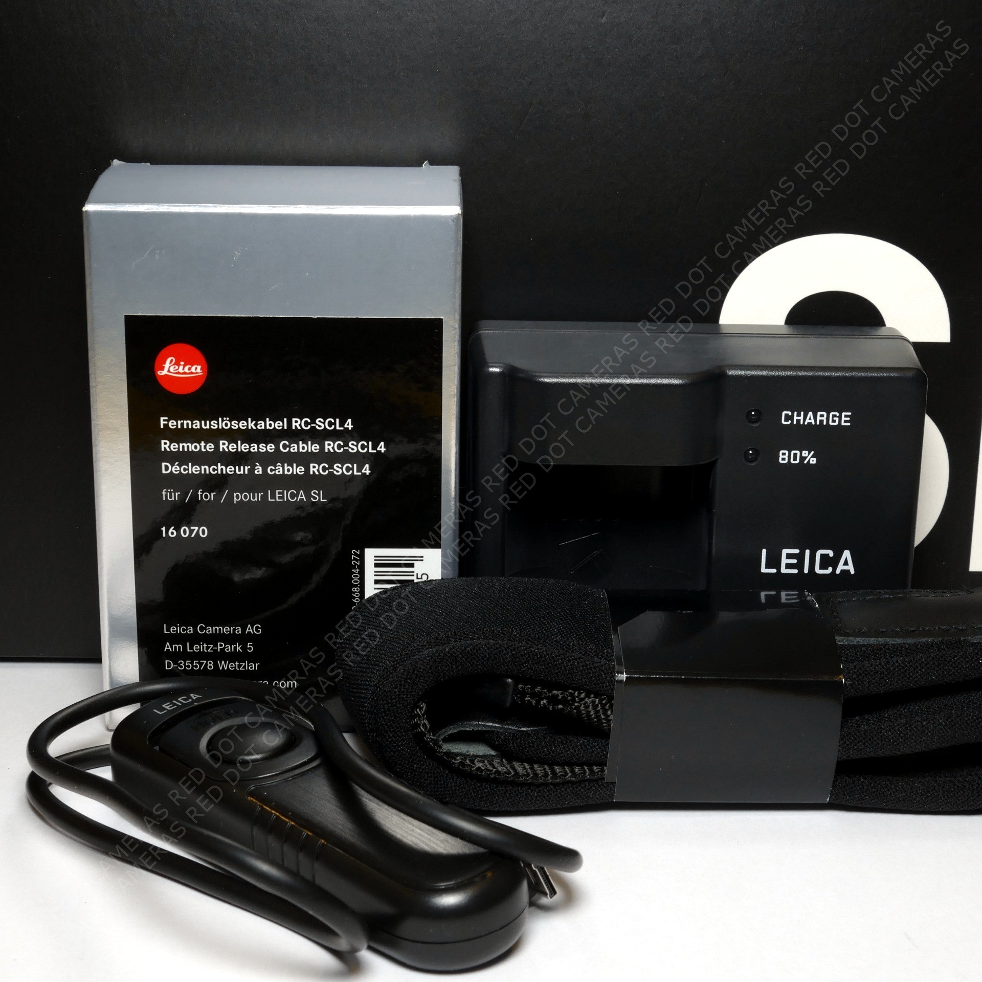 The camera comes boxed with Leica battery, battery charger and neck strap
