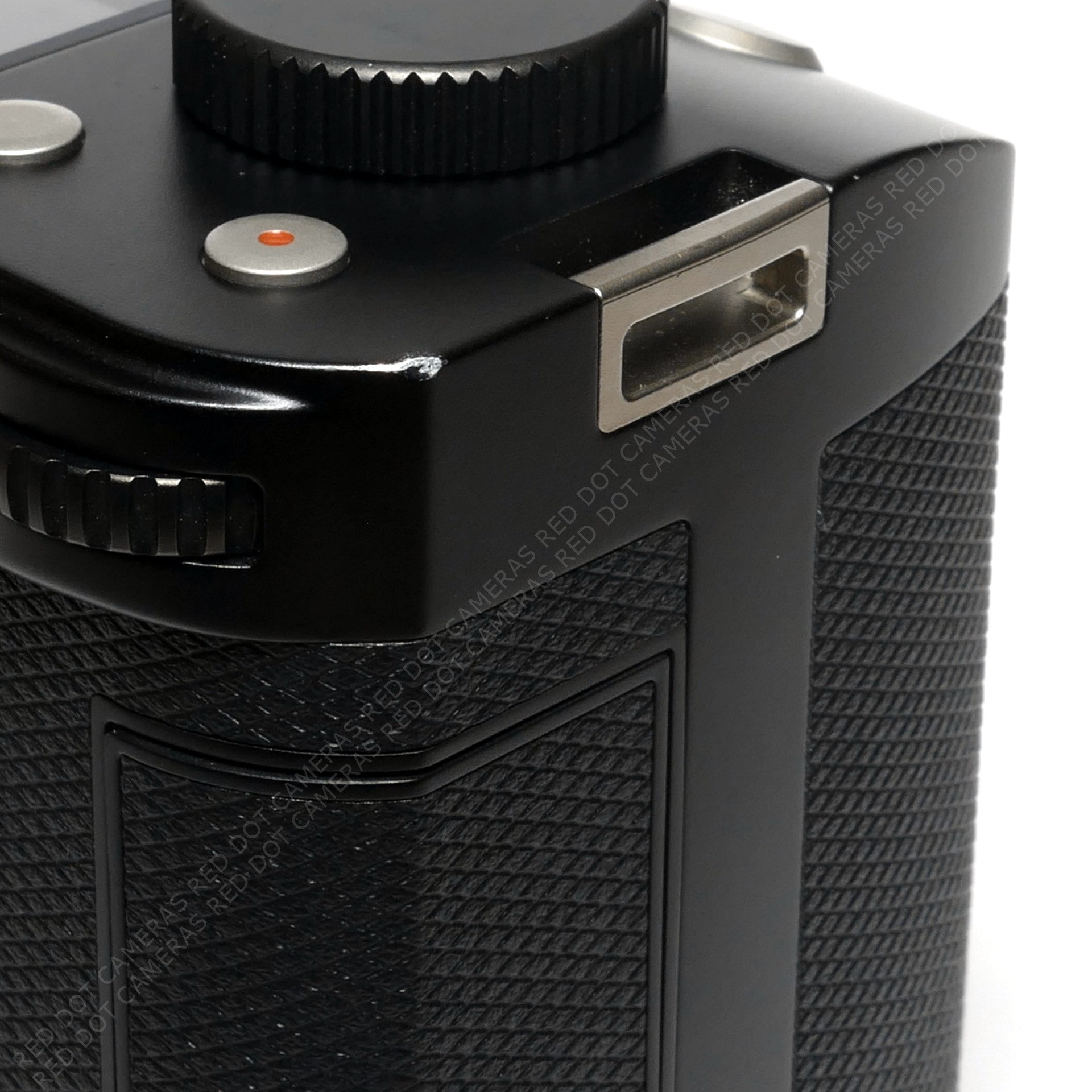 The camera comes boxed with user manual, Leica battery, battery charger, neck strap and remote release cable (boxed). There is a screen protector in place on the rear screen. The rubber on the eyepiece is slightly worn, see extra image